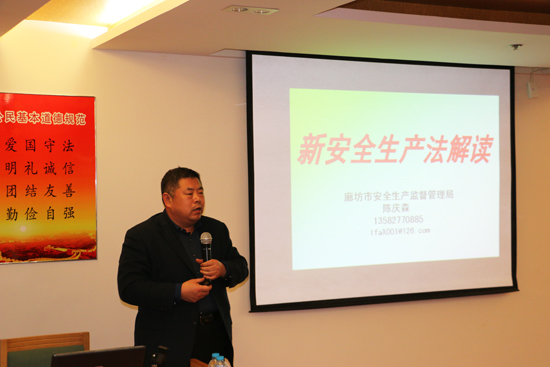 1月6日下午,中太建設(shè)集團(tuán)新《安全生產(chǎn)法》宣貫會(huì)在中太大廈17樓舉行,邀請(qǐng)廊坊市安全協(xié)會(huì)秘書長陳慶森老師現(xiàn)場(chǎng)授課,集團(tuán)公司董事長燕振義、執(zhí)行總裁張明禮及其他在家高管出席會(huì)議,副總裁同歲虎主持會(huì)議。陳慶森老師以大量鮮活案例為切入點(diǎn),結(jié)合新《安全生產(chǎn)法》的具體內(nèi)容,對(duì)比新舊兩版《安全生產(chǎn)法》的相同之處和不同之處,深刻剖析《安全生產(chǎn)法》改版的意義。陳慶森老師指出,要讓安全生產(chǎn)的理念回歸教育本質(zhì),從娃娃抓起,從身邊百姓抓起,讓每個(gè)人提高安全意識(shí),規(guī)范生產(chǎn)生活中的各種行為,才能使得安全生產(chǎn)現(xiàn)狀得到有效改善,才能保障社會(huì)生產(chǎn)生活的有序進(jìn)行。