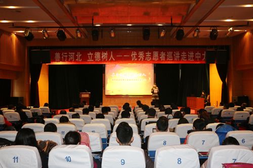 11月18日上午,由河北省文明委、共青團省委、省教育廳、省志愿服務聯(lián)合會、省志愿服務學院等部門聯(lián)合開展的“善行河北、立德樹人——優(yōu)秀志愿者巡講(2015)活動”, 來到中太進行巡講。受集團黨委書記、董事局主席李文健同志委托,集團黨委副書記、企業(yè)文化中心總監(jiān)鐘崇鶴同志代表集團黨委講話致辭,向省優(yōu)秀志愿者巡講活動團成員和市委文明辦的各位領導蒞臨中太,表示熱烈的歡迎!并畫龍點睛地闡明了巡講活動的重要意義和明確了下一步學習的方向和工作任務。