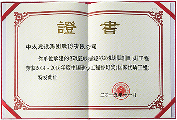 近日,中國建筑業(yè)協(xié)會(huì)公布了2014-2015年度中國建筑工程評(píng)比結(jié)果,中太建設(shè)集團(tuán)承建的北京“第三使館區(qū)外交公寓B南區(qū)外交辦公樓及附屬用房(D座、E座)”工程項(xiàng)目榮獲中國建筑工程最高榮譽(yù)獎(jiǎng)--魯班獎(jiǎng)。