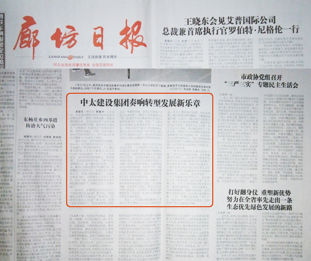 廊坊日報(bào)1月29日報(bào)道了中太建設(shè)集團(tuán)奏響轉(zhuǎn)型發(fā)展新樂章