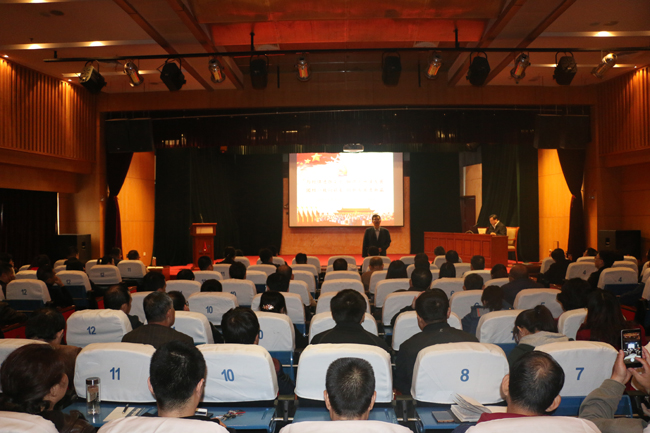 10月21日上午,以“與時俱進跟黨走 腳踏實地謀發(fā)展 團結(jié)一致向前看 創(chuàng)新發(fā)展譜新篇”為主題的中太建設(shè)集團“黨的十九大《報告》學(xué)習講座”在中太大廈二樓報告廳舉行,中太廊坊總部各集團板塊的機關(guān)黨員和所屬各單位部分黨員管理人員、入黨積極分子等共200多人參加講座,集團黨委副書記鐘崇鶴同志主持學(xué)習講座。