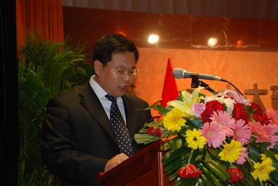 中太大廈二樓報(bào)告廳,鮮花吐艷,綠葉蔥蔥。“全面貫徹落實(shí)廣州年會(huì)精神,堅(jiān)決完成09年任務(wù)目標(biāo)”的大幅標(biāo)語格外醒目。
