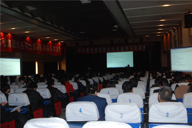4月1日,集團(tuán)公司在中太大廈二樓報(bào)告廳舉辦為期兩天的施工總承包企業(yè)特級(jí)資質(zhì)信息化培訓(xùn)班。公司副總裁劉啟友做開班動(dòng)員講話。副總裁楊剛、張國棟主持。總裁辦公室網(wǎng)絡(luò)管理員王永安授課。