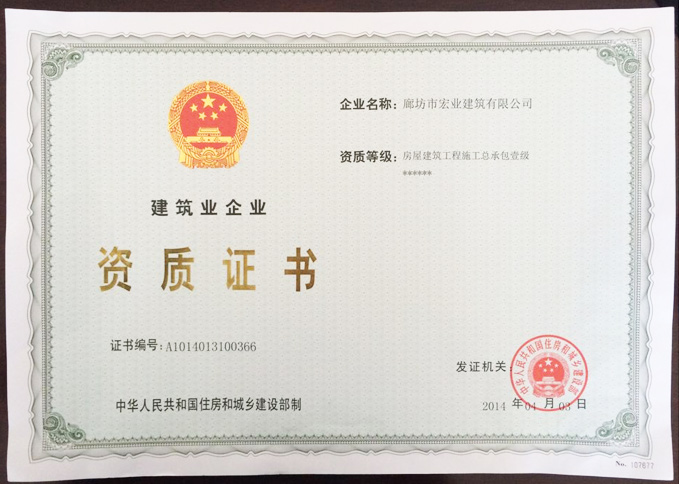4月3日,經(jīng)國家住房和城鄉(xiāng)建設(shè)部核準(zhǔn),中太建設(shè)集團(tuán)股份有限公司控股子公司廊坊市宏業(yè)建筑有限公司正式晉升為房屋建筑工程施工總承包壹級(jí)資質(zhì)。