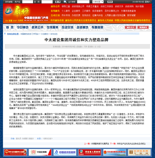 廊坊政府網(wǎng)中太建設集團用誠信和實力塑造品牌