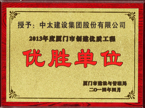 近日,中太建設集團榮獲2013年度“廈門市創(chuàng)建安全文明工地優(yōu)勝單位”、“廈門市建設工程質(zhì)量安全生產(chǎn)文明施工先進單位”、“廈門市創(chuàng)建優(yōu)質(zhì)工程優(yōu)勝單位。何波、曹仰高被評為先進個人。(第九工程局)