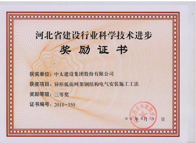 2018年河北省建設(shè)行業(yè)科學(xué)技術(shù)進步獎勵證書匯總