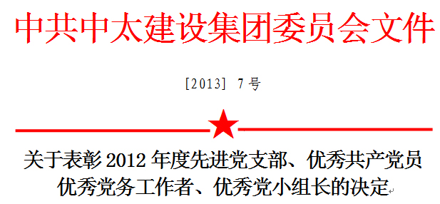 2012年度,集團(tuán)公司各級(jí)黨組織堅(jiān)持以科學(xué)發(fā)展觀為指導(dǎo),按照集團(tuán)黨委的總體要求,緊緊圍繞“一園兩翼,多元發(fā)展,實(shí)現(xiàn)中太產(chǎn)業(yè)結(jié)構(gòu)轉(zhuǎn)型升級(jí)”和“三個(gè)跨越、四個(gè)一體化”的戰(zhàn)略發(fā)展目標(biāo),堅(jiān)持“打中太牌,走全國路,謀海外財(cái)”的發(fā)展方針,深入貫徹落實(shí)黨的十八大精神,結(jié)合黨委開展的“三抓三帶”活動(dòng),團(tuán)結(jié)帶領(lǐng)廣大黨員積極創(chuàng)先爭(zhēng)優(yōu),服務(wù)中心工作,為推動(dòng)企業(yè)持續(xù)、健康、和諧發(fā)展發(fā)揮了黨組織的戰(zhàn)斗堡壘作用和政治保障作用;廣大黨員在各自的崗位上勤奮工作、勇挑重?fù)?dān),發(fā)揮了黨員的模范帶頭作用,涌現(xiàn)出了一批業(yè)績突出的先進(jìn)集體和優(yōu)秀個(gè)人。為表彰先進(jìn),樹立典型,充分發(fā)揮榜樣的示范作用,激勵(lì)黨員和員工見賢思齊,全面推動(dòng)集團(tuán)公司科學(xué)健康發(fā)展,在紀(jì)念中國共產(chǎn)黨建黨92周年之際,集團(tuán)黨委決定,對(duì)混凝土公司黨支部等8個(gè)“先進(jìn)黨支部”、林維生等39名“優(yōu)秀共產(chǎn)黨員”、楊召國等9名“優(yōu)秀黨務(wù)工作者”、閆建薇等10名“優(yōu)秀黨小組長”予以通報(bào)表彰。